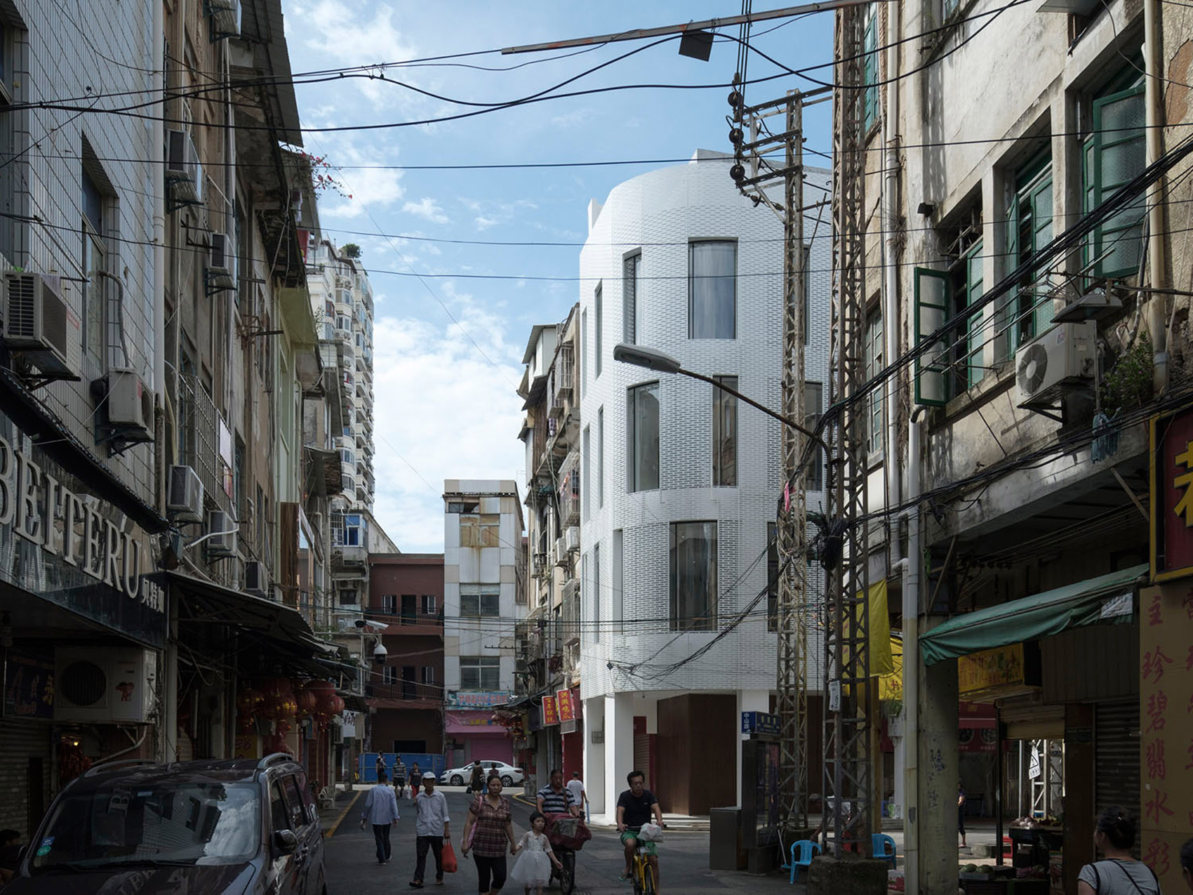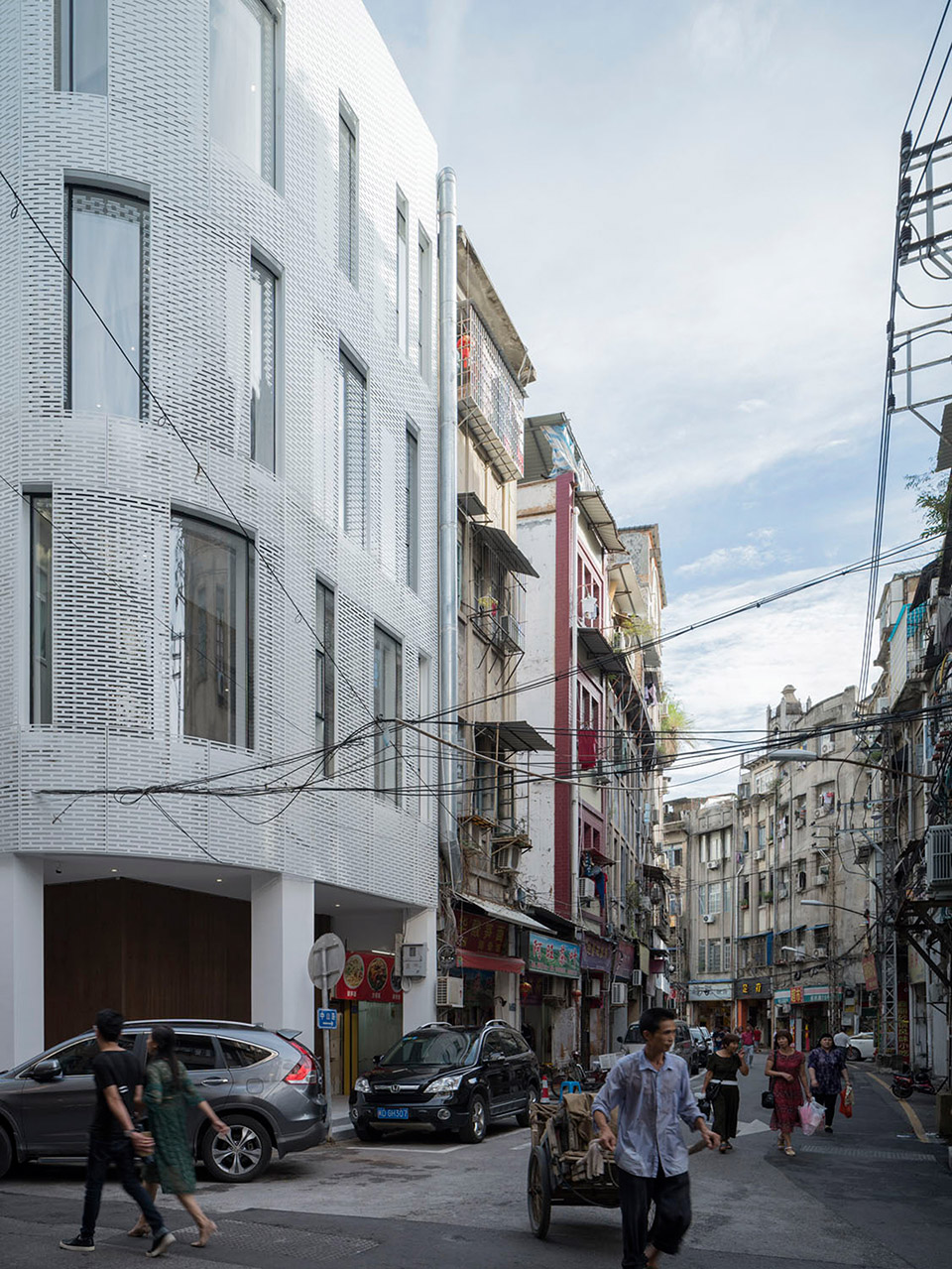 镇邦路114号项目为旧建筑改造的餐厅项目,最大特色在于其原有建筑形式以及所处的位置——厦门中山路区域。该区域现存建筑最早可以追溯到上世纪20年代,为当时闽南地区较为常见的骑楼建筑形式。我们的项目为位于街道转角的一栋五层高的骑楼,每层面积约为45平米。